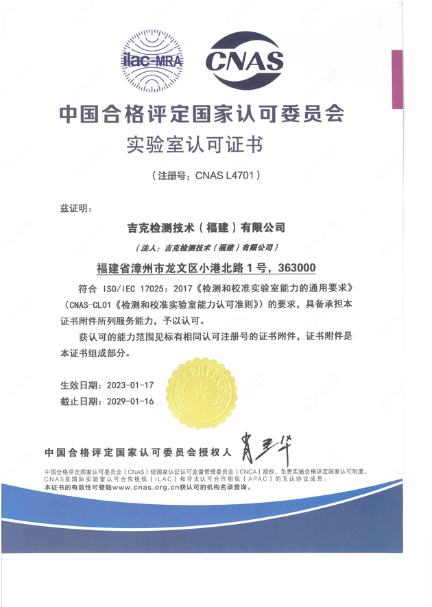 吉克檢測技術(shù)(福建)有限公司,位于福建省漳州市龍文區(qū)小港北路1號(hào),于2019年8月注冊成立,是一家獨(dú)立的第三方檢測公司。公司已經(jīng)通過檢驗(yàn)檢測機(jī)構(gòu)計(jì)量認(rèn)證(CMA)、農(nóng)產(chǎn)品質(zhì)量安全檢測機(jī)構(gòu)資質(zhì)認(rèn)證(CATL),獲得中國合格評(píng)定國家認(rèn)可委員會(huì)(CNAS)認(rèn)可。公司本著“嚴(yán)謹(jǐn)、規(guī)范、高效、協(xié)作”的原則和對(duì)客戶及社會(huì)高度負(fù)責(zé)的精神,充分利用本公司優(yōu)質(zhì)的檢測環(huán)境、先進(jìn)的檢測設(shè)備和專業(yè)的技術(shù)人員,第一時(shí)間為客戶提供科學(xué)、公正、準(zhǔn)確的檢驗(yàn)檢測報(bào)告。 公司實(shí)驗(yàn)室面積1100多平方米,儀器設(shè)備兩百多臺(tái)(套),固定資產(chǎn)一千多萬元,在職員工31人,技術(shù)人員中的中高級(jí)職稱及同等能力人數(shù)占60%以上。我們的服...